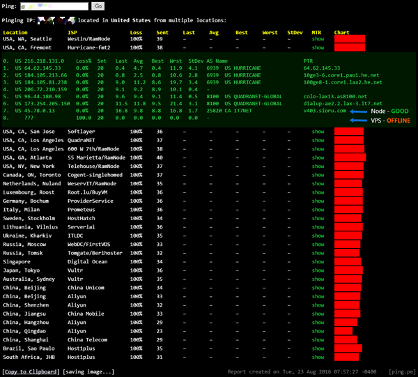 从上面的示例中可以看出,物理节点“v403.sioru.com”运行良好,但我们正在 ping 的特定 VPS 处于离线状态。